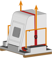 握住搬运手柄的把手。按照法律规定,由尽可能多的员工抬起机器。