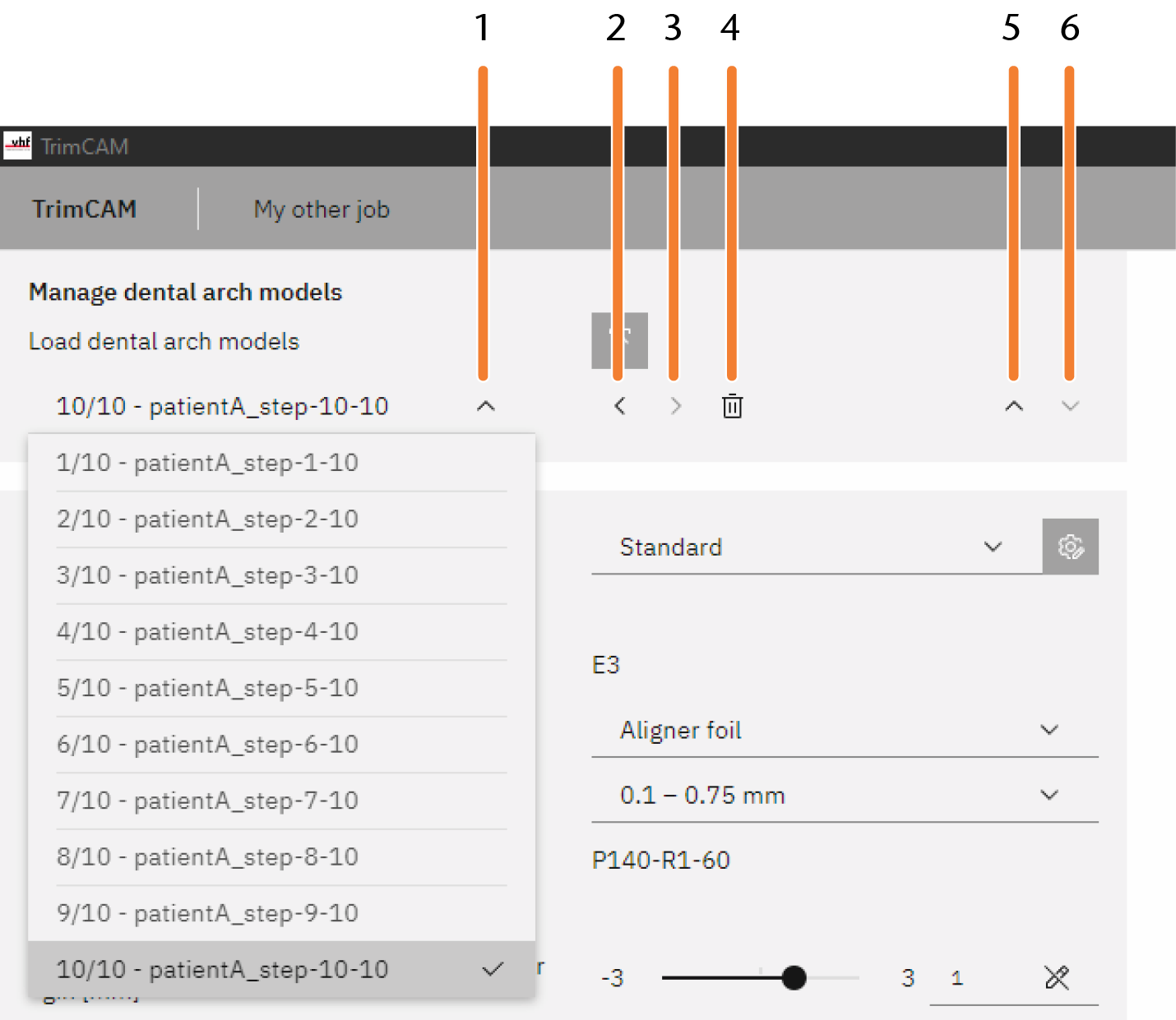 trimcam 支持对多个牙弓模型的批量处理,每个模型代表同一患者的不同治疗步骤。