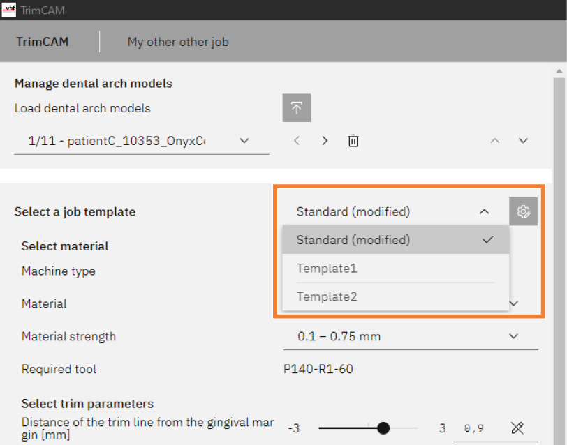 加工任务包含修剪一个或多个牙科咬合夹板所需的所有数据:3D 数据、底座和修剪参数、计算的铣削路径等。